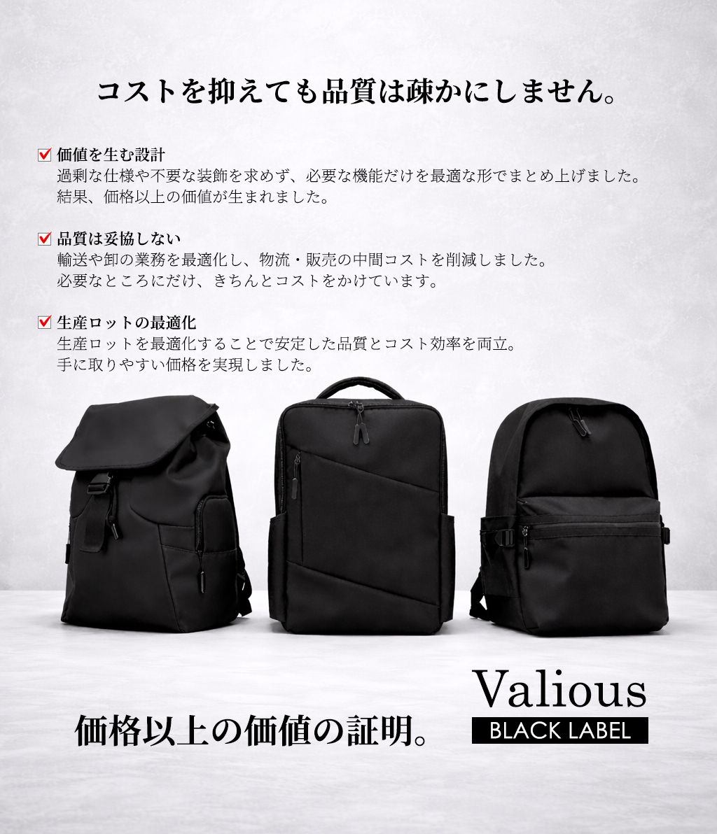 余分な設計を省き、高品質と低価格を両立した”Valios”ブランド。