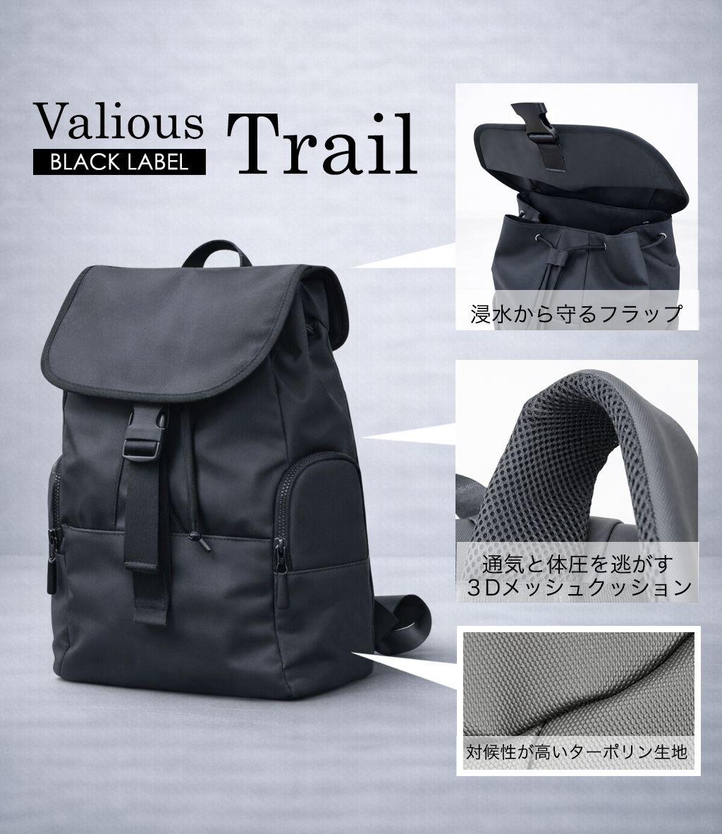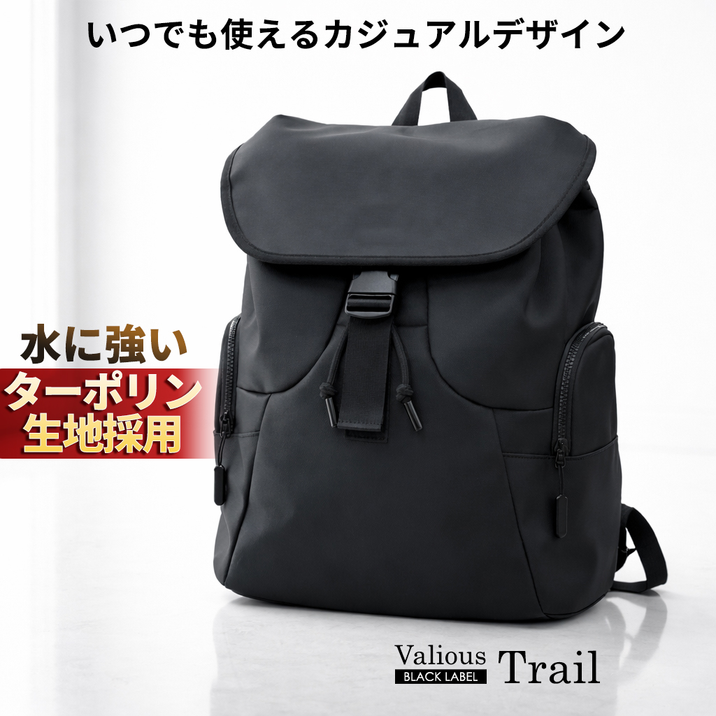 【3月デリバリー開始】Valiosブラックレーベル Trail(トレイル) ターポリン生地 リュック